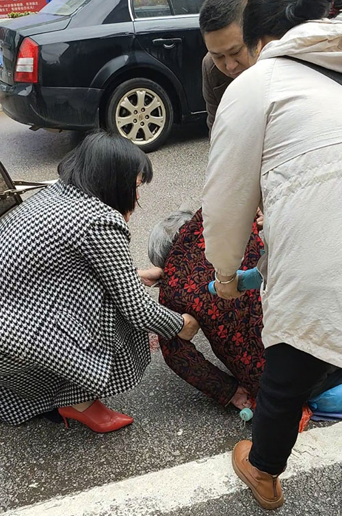 由于近来进入多雨天气,路上比较湿滑。在湖南永州蓝山县塔峰镇商业街有一位年迈的老人摔倒在地,磕破了脸,半张脸都是血,或许是长时间没有人来扶,加上磕伤比较严重,地面流了一大滩血。路旁边就是过往的行车,人如不挪开,处境十分危险。