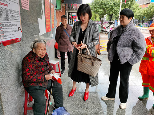当天上午10点10分左右,蓝山县义工协会秘书长肖玉忠行走在义工协会1公里附近的蓝山县塔峰镇商业街,正巧碰到了老人躺在地上一幕。当时老人身边都是匆匆走过的行人,要么离得远远的围观,没有人敢上前扶老人一把。肖玉忠看到摔伤老人就一个念头,一定要把老人给扶起来,可又有几分担心,于是让旁边的爱心人士拿他的手机帮忙先录制一个短视频,然后在大家的见证下,肖玉忠扶起老人,并把老人扶到银行旁边的檐廊里,为老人要了凳子,请老人坐下。这时有人过来给老人送上卫生纸,老人把半边脸上的血擦擦。