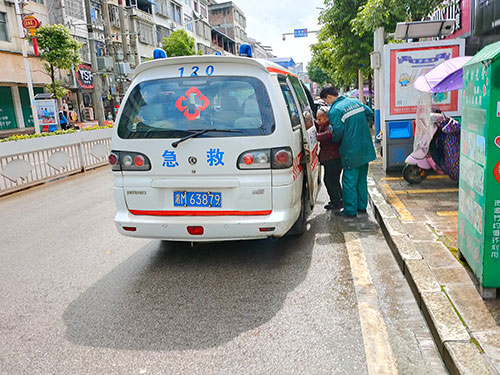 在热心市民的帮助下,拨打了120急救电话。爱心市民掏出老人的老人机,找到老人子女的电话,顺利联系上了老人的家属。