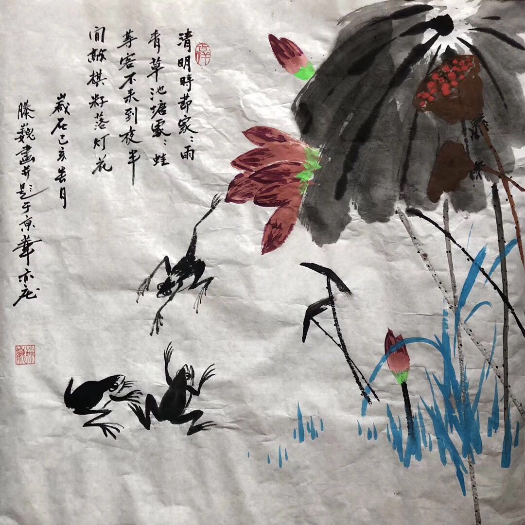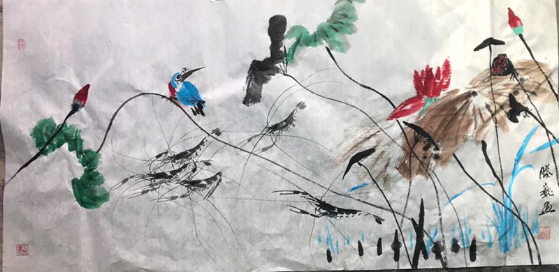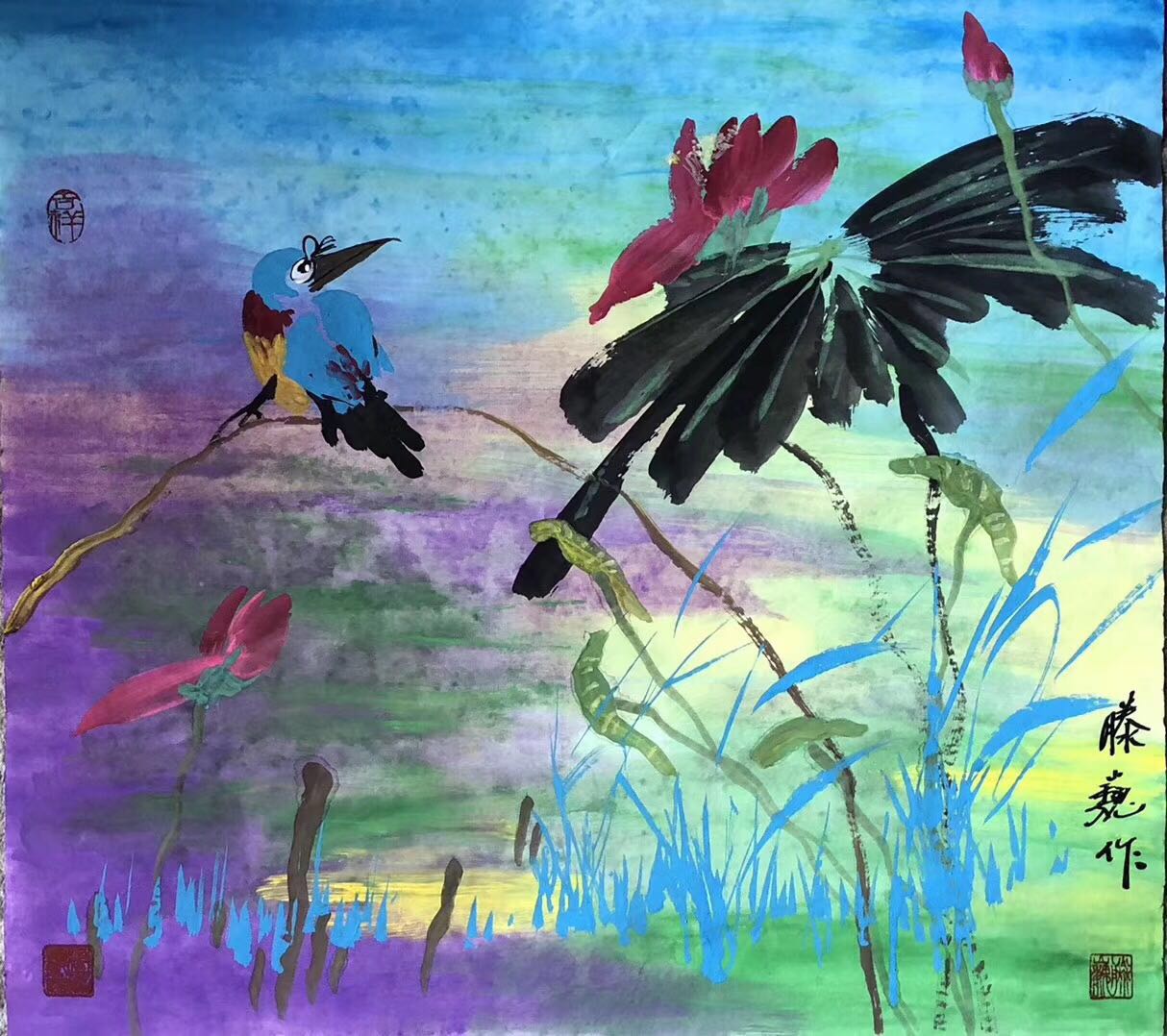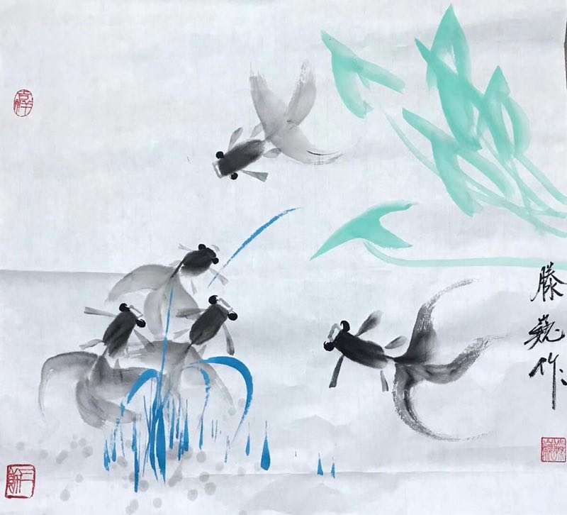 也许是机缘巧合,滕巍与齐白石大师关门弟子傅石霜先生在同一单位工作,有幸拜他为师,努力学习绘画。在傅石霜先生的传教下,她深刻体会到了齐白石老先生对于绘画的理念,并同时还学到了许多绘画技法。之后她又向画坛名宿李苦禅弟子朱荣海先生,韦江凡先生等名家虚心求教,受益匪浅。经过十几年的刻苦钻研,滕巍在写意花鸟画创作上,达到了一个新的高度,尤其擅画鱼虾作品,笔墨清新,生动自然,在书画界崭露头角,受到好评。