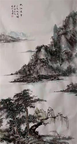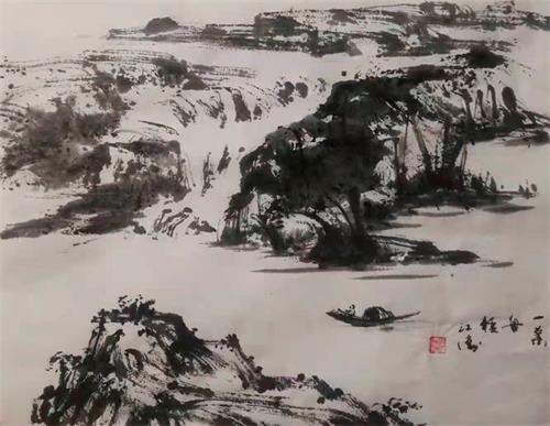 杰观屹看大江流,苍茫烟云飘摇舟。