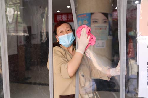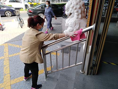 有些老人走路不便,上台阶时有可能手扶栏杆来保障自身行走安全,因此扶手栏杆也是医院重点消毒的区域,保洁人员同样要对门外扶手栏杆进行多次擦拭消毒处理,避免出现卫生死角。