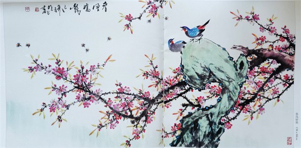 写意花鸟画,是表现画家创意博大与功力非凡的创作,在很大程度上,能够体现画家的修养与学识。许献廷以传统为师,以自然为师,在解读传统技法中,悟出艺术创作的精妙。他的画作常表现自然生态主题,用墨谨慎,讲究干净利落,让人感觉出平中求和、和中求贵的朴素,营造的是意趣天成、鸟语花香的艺术氛围。他笔下的一草一木、一个动物都被赋予了鲜活的生命,很容易使人想到大自然鸟语花香的静幽之美。那种栩栩如生、精致动人的视觉效果,那种形神兼备、气韵生动的情趣意境,让人从内心里感觉陶醉,给人以圣洁高雅的艺术感受。