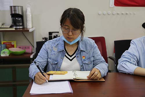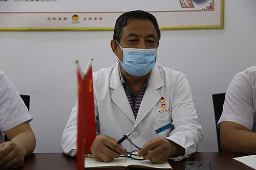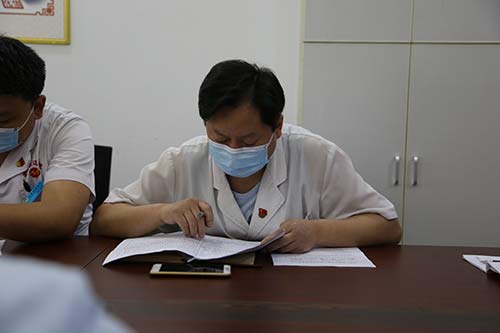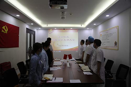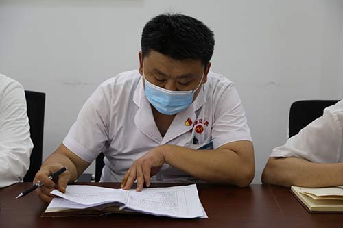 康迈医院党支部栗新华书记为现场在座的每位党员详细介绍本次会议主要议题,讨论接收訾昳菲同志是否为一名合格的预备党员。