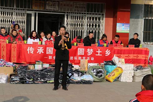 由爱心人士为同学们捐赠了经典诵读播放器以及作业本、书包、文具盒等学习用品总价值10万元左右,用于资助贫困学子的生活近况,改善校园活动条件。
