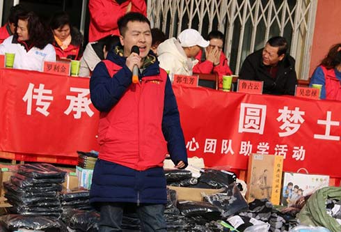 互助县教育局局长吴忠禄致辞中首先表示对爱心人士的欢迎与感谢,感谢他们对山区的关爱,把爱的种子播撒在互助的大地,把善的温暖传递给土乡的孩子。同时告诫孩子们常怀感恩之心,把这些关爱化为自强不息,做一个“四爱三有”的好少年。