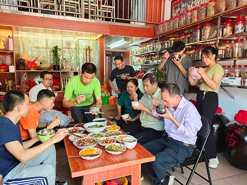 清晨时分,谢文淦给苏老打了个电话问候苏老。苏老的子女都很孝顺,子女本要和苏老一起吃团圆饭。当听到有好几个读卫校的孩子来到崇义益生堂温暖之家过节日时,苏老特别想看看这些徒子徒孙,谢文淦便派了个司机去乡下接苏老来城里,结果委派的司机在半路上打来电话,告诉谢文淦车子坏了没法接苏老。谢文淦又给崇义益生堂的义工打电话,请大家帮忙接一下苏老。由于当天是八月十五,都比较忙,没帮成忙。谢文淦又找了一个网约车,到了中午终把苏老给接到了县城。苏老来崇义益生堂,谢文淦为老师父准备了一桌丰盛的午餐,大家一起陪着老师父夫妇吃饭,苏老心中特别高兴。老师父常在外人面前夸赞,称来到徒弟这里就像到了自己家里一样,感觉很温暖。