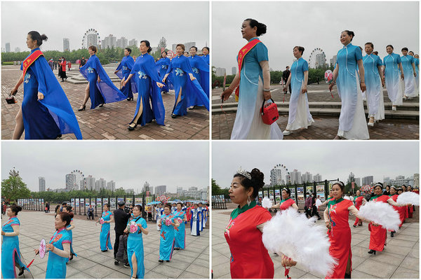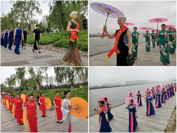 或许提起旗袍美人,人们会想到别具风情的张曼玉,抑或性感妩媚的汤唯,但是今天这些迈着优雅步伐,不惧天刚放晴的丝丝寒意,向我们展示东方艺术美的模特,他们的平均年龄基本都在五六十岁。