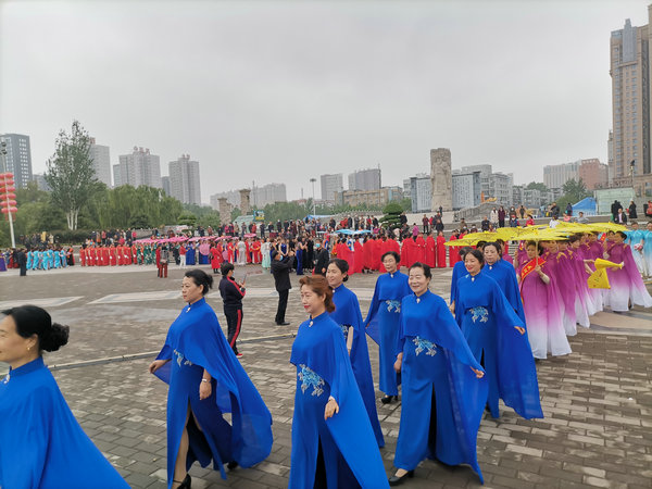 上午9时许,旗袍秀开幕式在咸阳市统一广场举行,秋菊主持。咸阳市信天游文化促进会会长张斌说:“举办此次活动的主要目的是活跃群众文化生活,丰富今年花开逛咸阳活动内容,展现咸阳市古老的东方精神和艺术魅力。”随后,咸阳市信天游文化促进协会特邀会长李旭东宣布活动正式开始。
