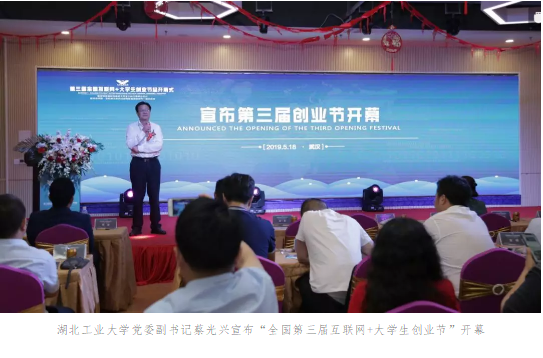 最后,湖北工业大学党委副书记蔡光兴宣布“第三届518大学生创业节”开幕,将本届大会推向高潮.