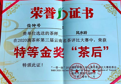 俊仲号凭借自身实力,十余年来斩获多项殊荣。能够在2020滇茶杯第三届云南名茶评比大赛中,一举获得两款茶叶特等金奖荣誉,足见茶叶品质,已经得到了昆明市茶业行业协会的高度认可,揽得本次活动大奖,当属实至名归。这份沉甸甸的荣誉对于俊仲号而言也是一种鼓励与鞭策,激励着俊仲号人秉承匠心精神,做好百年茶叶,将茶文化通过原生态传统制作的手法发扬光大,让更多人认知俊仲号普洱茶,并品尝到一款优质的茶叶。