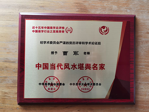 2021年10月12日,在《易经》研究界再传佳音,《易经》研究学者、著名国学导师曹军老师荣获中国当代风水堪舆名家、中国当代易学名家殊荣,这