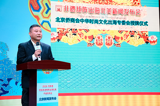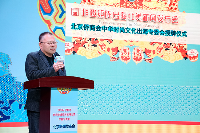 作为活动主办方及专委会工作的牵头人,百年老号“裕泰祥1918”第四代传承人、北京侨商会中华时尚文化出海专委会主任孙俭,首先宣布百年裕泰祥海外游子正式回归祖国怀抱,落地北京市东城区,完成了多年的心愿与诉求!并详细阐释“非遗矩阵”的核心理念与构建逻辑,并正式发布“2026北美贺新春新非遗矩阵时尚品发布会”项目。该项目作为专委会开篇核心工作,定于2026年2月28日在美国比佛利山庄举办高规格中国非遗时尚产品发布会,将承载中华文明底蕴的非遗精品,以时尚化、品牌化形象推向北美高端市场。目前,项目已获得中国驻洛杉矶总领事馆、比佛利山庄会议旅游局等机构的官方支持。