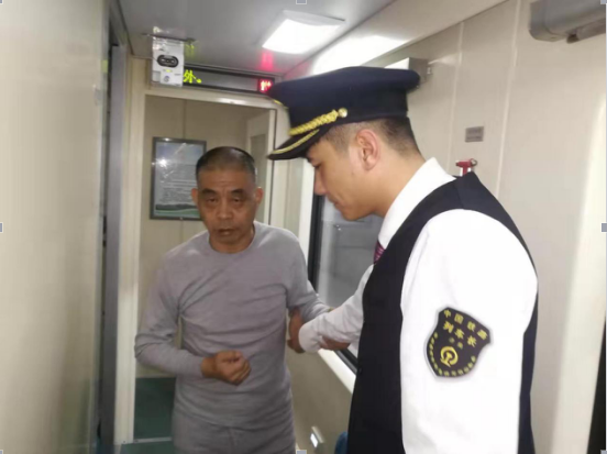 安排好铺席后,王宇洋嘱咐当班列车员高渝照顾好患病的张先生。一路上,每当王车长当班时,他都会抽出时间去看望两位老人。聊天得知,老人住在株洲,是一对恩爱老夫妻,张先生前些年出门旅游时,患上了“中风”才导致偏瘫的,当天,老人带着小孙子去株洲和儿子团聚。对工作人员一路上的照顾,两位老人表示了由衷感谢。列车到达株洲站后,王宇洋组织安全员李杰、杨为福一起,帮助他们下车。考虑到株洲站是低站台,而张先生坐着轮椅不方便下车,王宇洋干脆把张先生背在身上,安全员李杰帮忙拿行李,杨为福帮忙拿轮椅。下车后,王宇洋等人又把张先生扶到了轮椅上并与株洲站工作人员办理重点旅客交接。