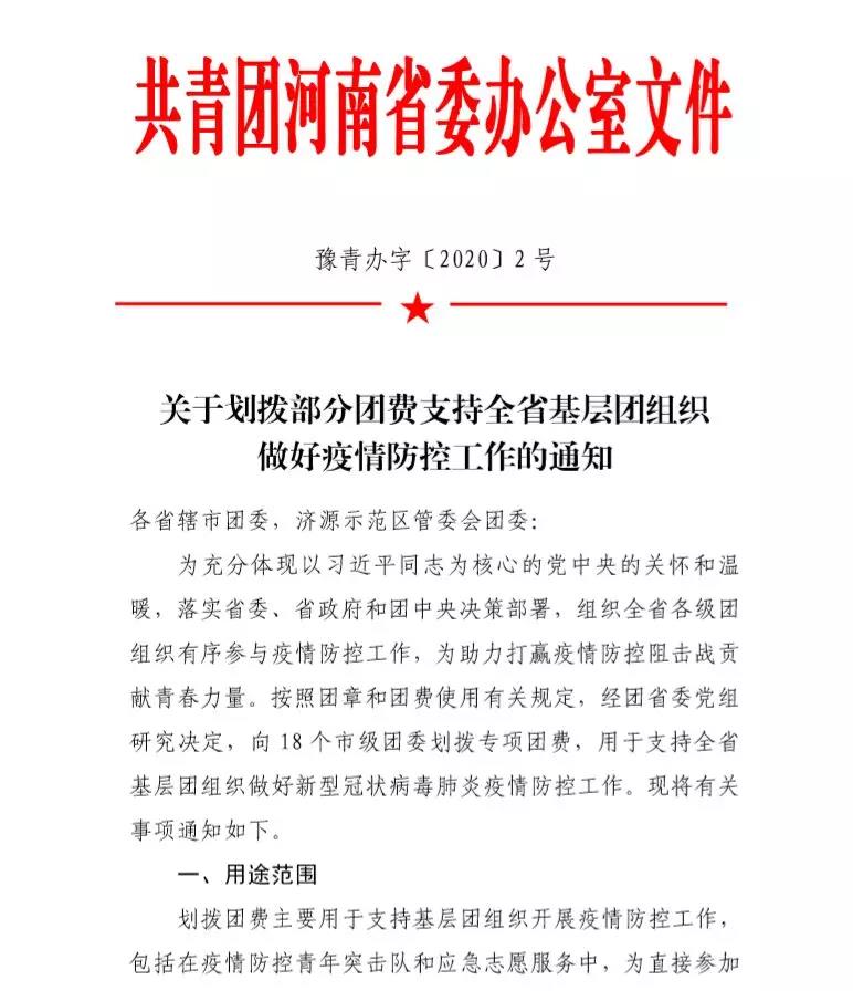 按照团中央、团省委决策部署,全市各级团组织在市委市政府的统一领导下,积极组织动员广大团员青年通过各种方式有序参与到疫情防控工作中。共青团濮阳市委统筹利用团省委划拨的5万元专项团费,第一时间多方协调采购防疫紧缺物资医用外科口罩2万只,并将青企协副会长单位、饿了么濮阳运营中心总经理于腾达捐赠的价值10000余元的1500只口罩、450瓶医用酒精,全部发放给各县区奋战在防疫一线的青年突击队、青年志愿者和团员青年,积极支持基层团组织开展防疫工作。